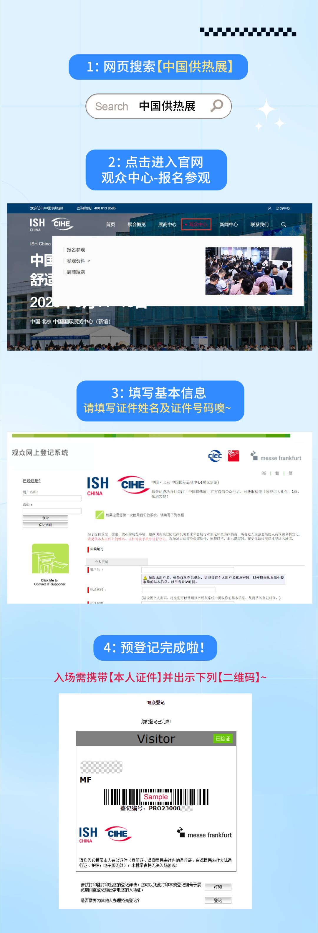 需携带身份证并出示预登记二维码