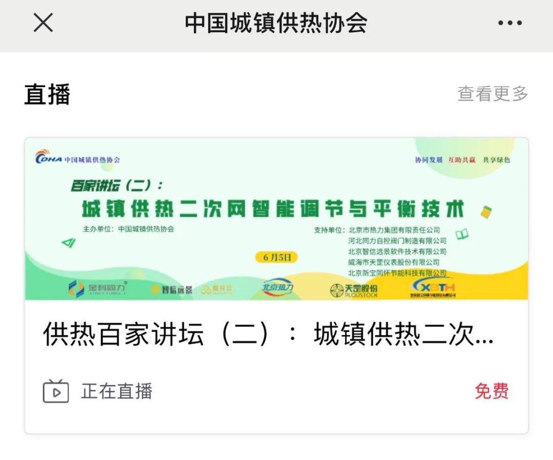 在疫情防控的特殊时期,中国城镇供热协会火速开通“中热协线上直播平台”,邀请专家讲师来到直播间进行标准规范宣贯、热点问题研讨、供热案例分享。直播平台同时拓展了直播回看、电子书浏览、微信下单等功能,助你高效工作、快速提升,早日迈向人生巅峰!