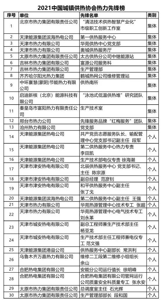 在党诞辰100周年之际,为大力弘扬劳模精神、劳动精神、工匠精神,中国城镇供热协会征集了供热行业先锋集体及个人事迹,弘扬榜样力量,现与广大供热同仁共享。(先锋名单见文末)