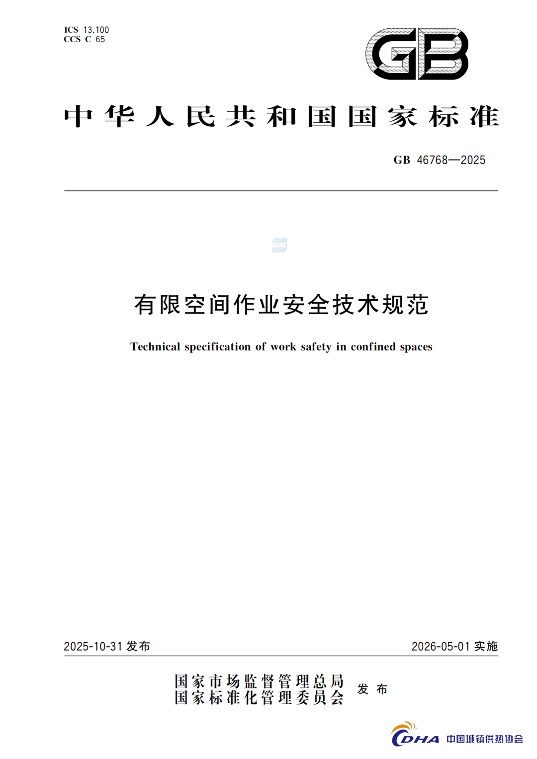 《有限空间作业安全技术规范》标准号GB 46768-2025,发布机构与版权归属于国家市场监督管理总局、国家标准化管理委员会。