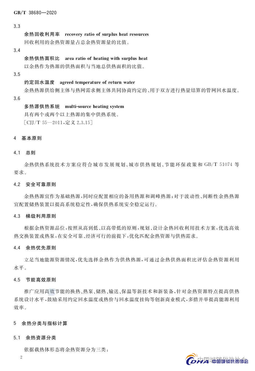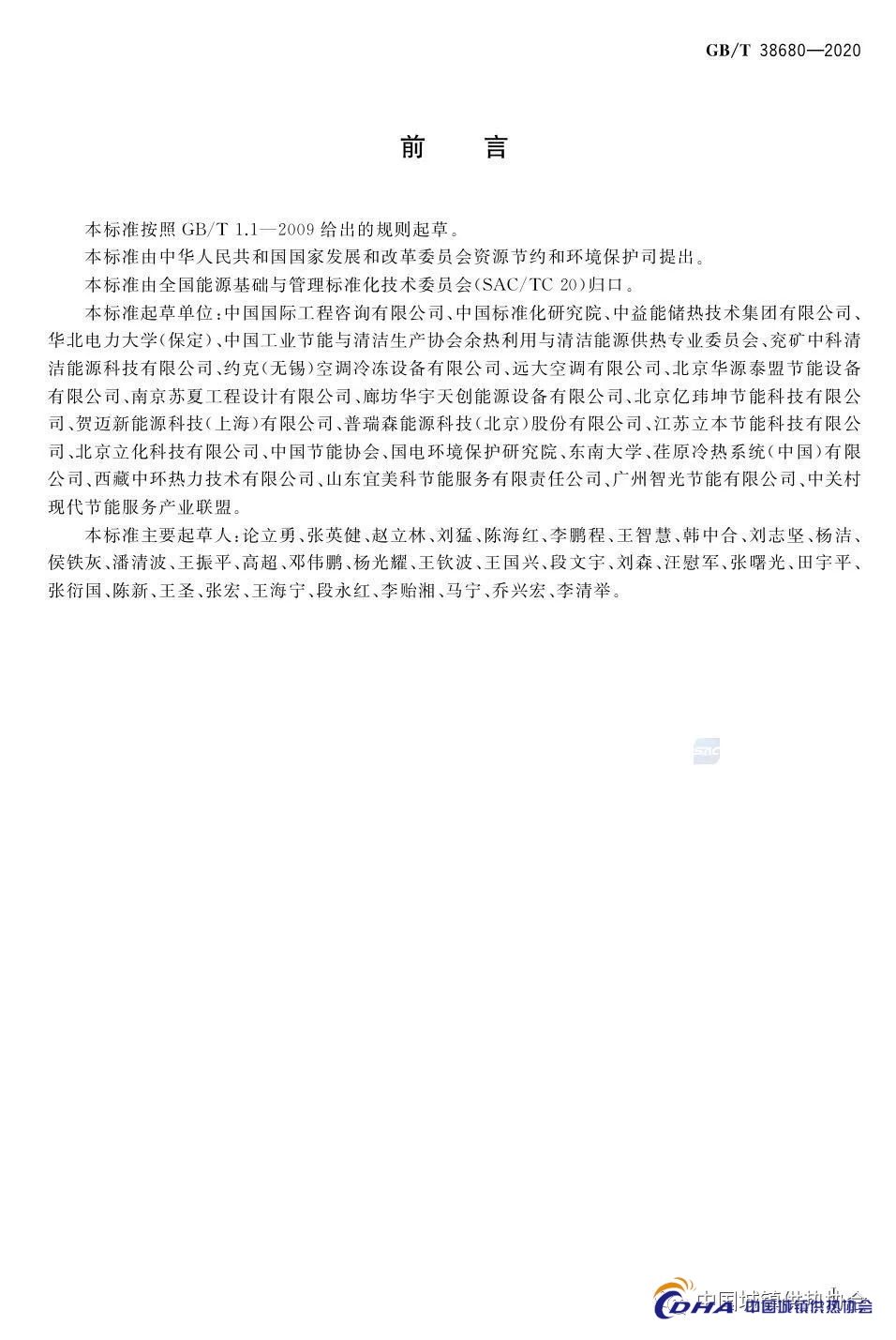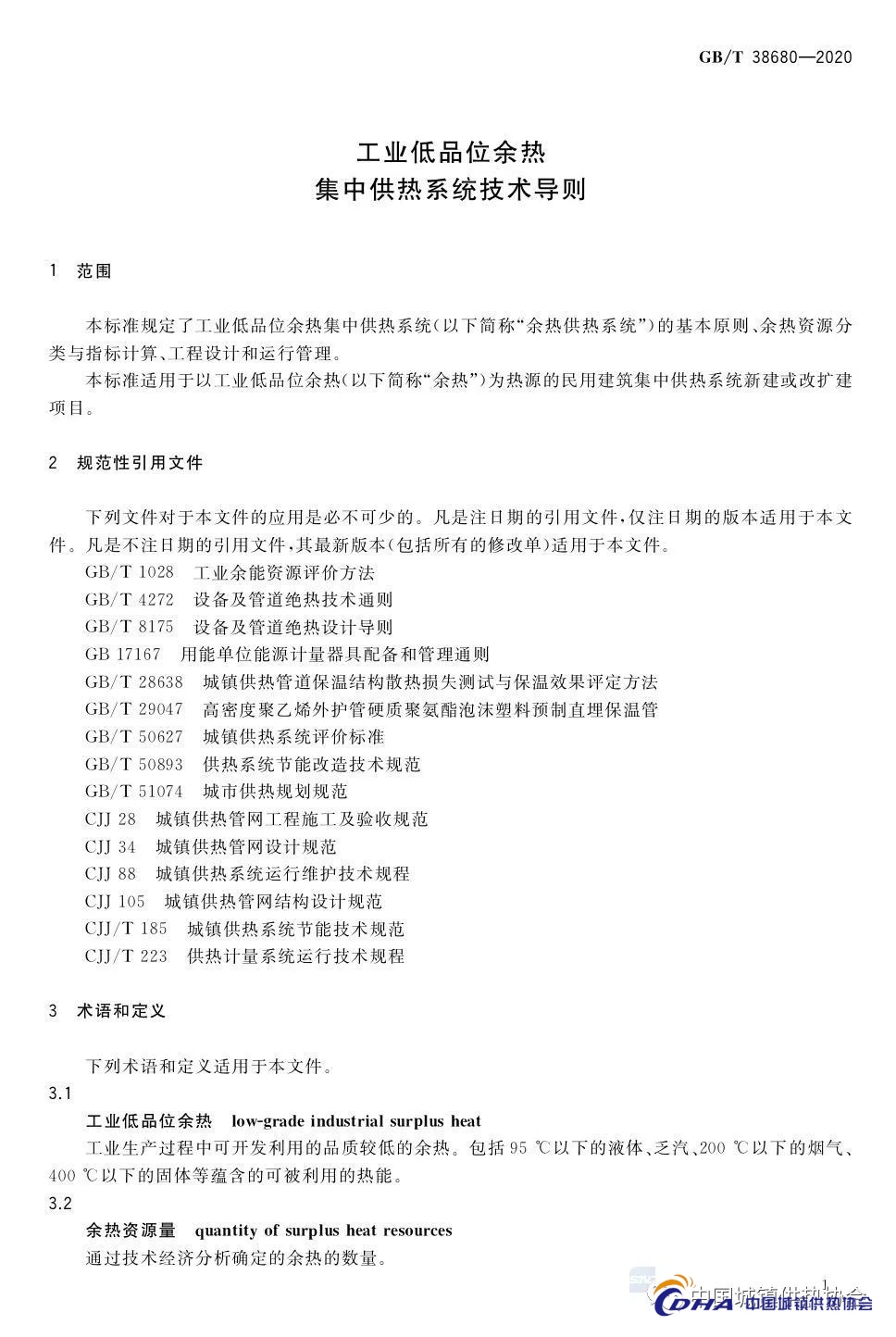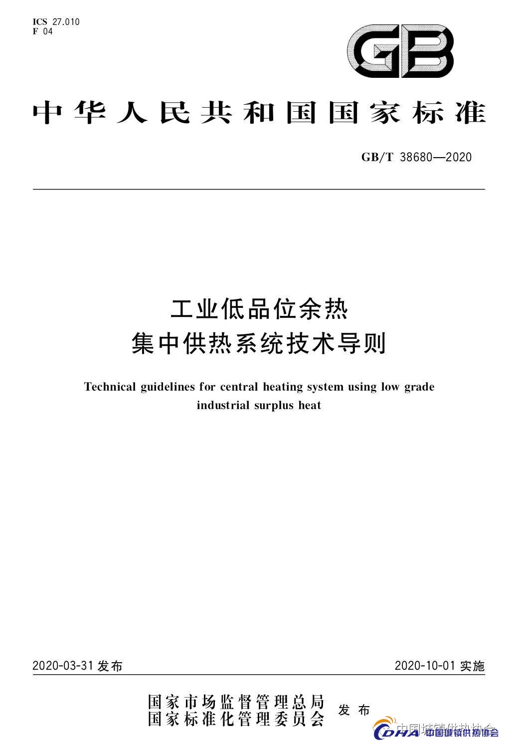GB/T 38680-2020《工业低品位余热集中供热系统技术导则》