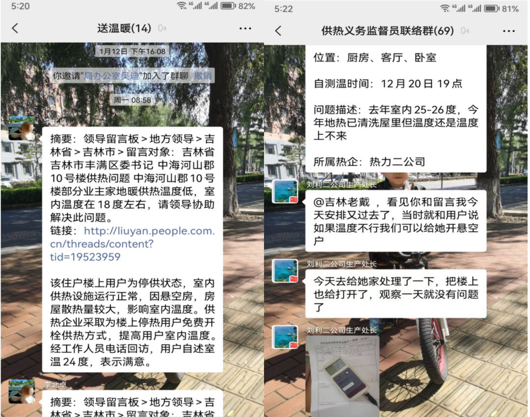 一是加强督导调度。为及时发现问题、快速解决群众诉求,吉林市供热行业主管部门改“周调度”为“日调度”,每天16时采取视频会议方式,组织属地政府供热主管部门、供热企业负责人召开调度会,通报全市供热运行情况,听取属地和企业当天工作情况。目前召开调度会70次,共收集问题350个,解决345个,正在推进解决5个。