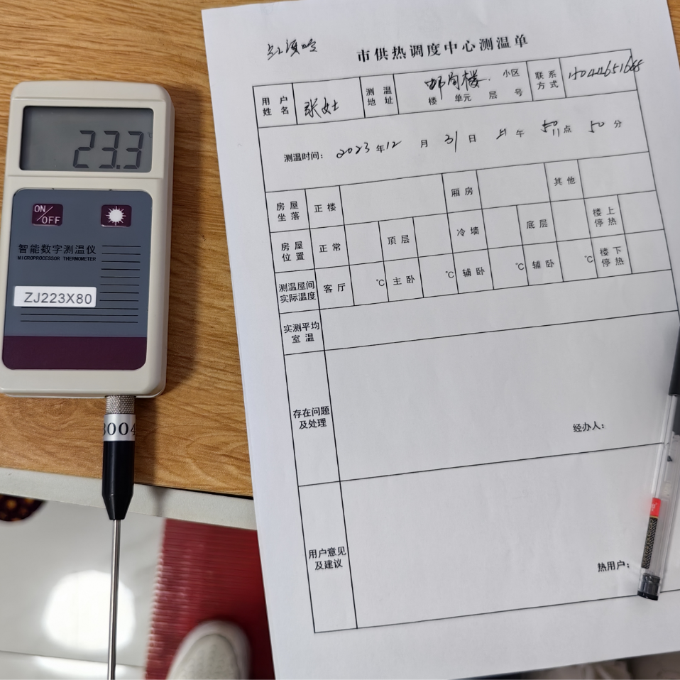 二是强化民生优先。深入开展“访民问暖”活动,市供热行业主管部门抽调260人与属地政府、供热企业组成联合工作组,逐户走访测温、兜底排查问题,变上访为下沉,进一步察民情、解民忧、暖民心。通过对全市76万户热用户开展大起底、真入户、全覆盖、快解决的排查走访调研工作,针对室温不达标的用户,供热系统淤堵的免费进行清洗,房屋悬空的邻户免费开栓,需要辅助采暖的免费提供采暖设施并补贴电费。通过上述措施,室温在20℃以下的用户,从第一轮排查出的6.9万户降至第三轮的6089户。主要原因为供热管线老化、边顶底住户、部分楼房未做外墙保温等。目前已全部解决完毕。