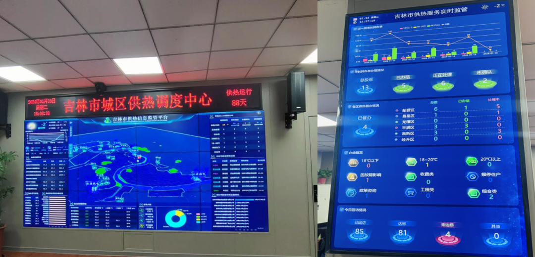 一是筹建调度中心。按照信息化、数字化、智能化要求,吉林市城区供热运行调度中心于2023年12月10日建成投用,集督导调度、信息研判、指令下达、资源调配、集成办公、综合管理等职能为一体,构建市城区统一指挥、集中管控、分级负责、协同联动的综合调度指挥体系。通过供热调度平台实时监控企业供热参数,运行数据清晰直观,工作效率大大提高。