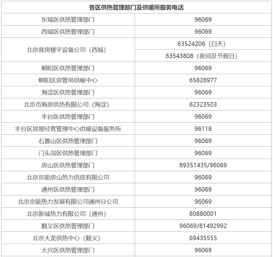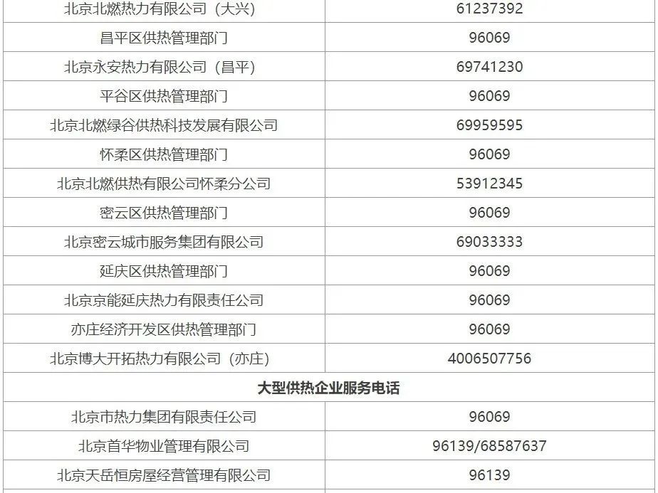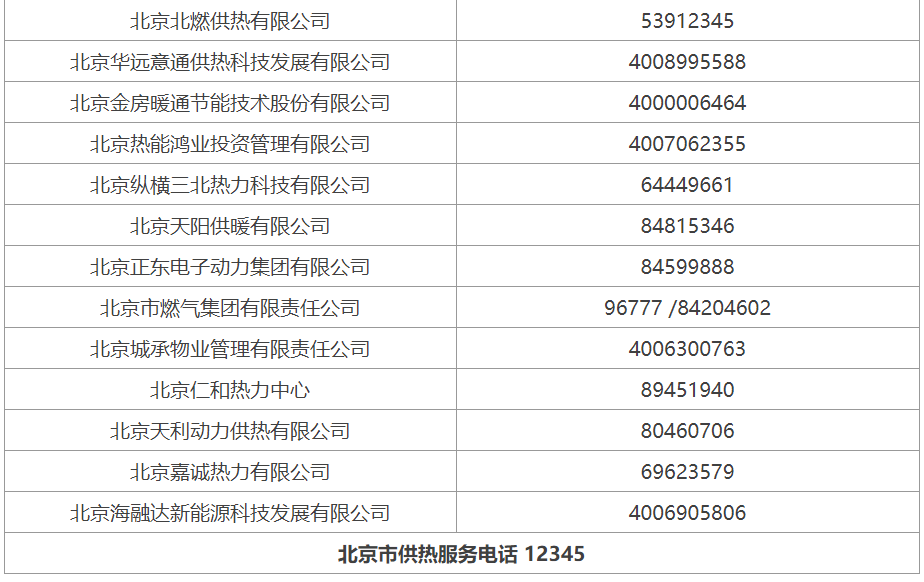 北京市2022-2023年采暖季供热服务电话
