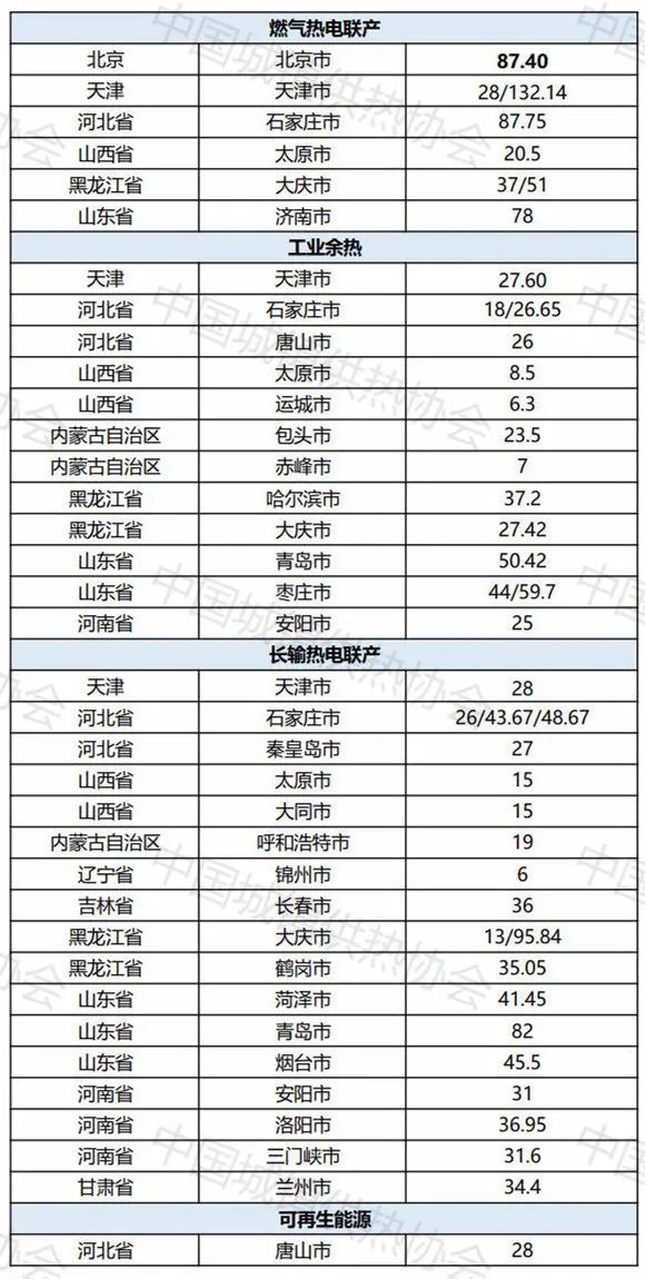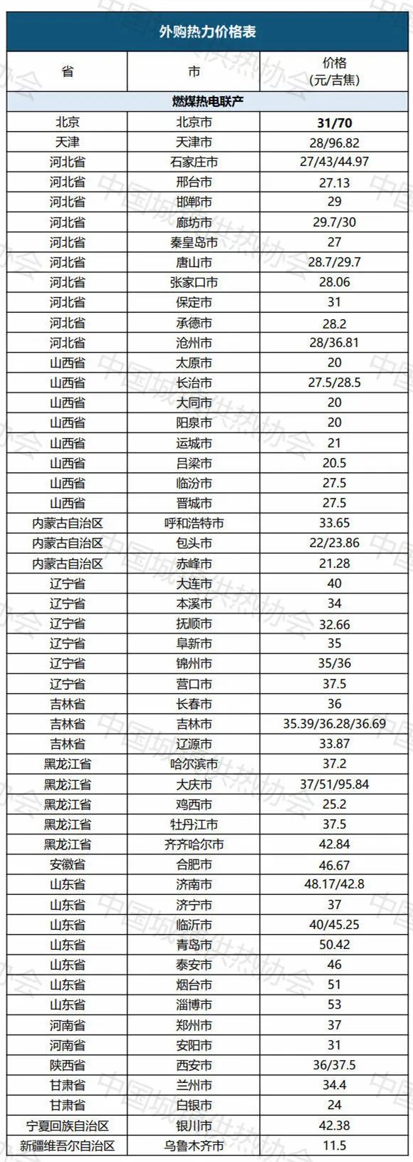 根据协会2022年全国部分供热企业统计工作结果,现摘取各地2021-2022供暖期部分地区外购热力(燃煤、燃气、工业余热、热电联产、可再生能源)价格,予以公布。