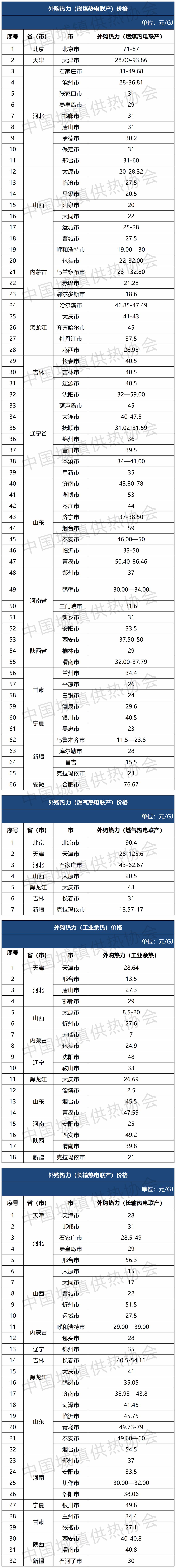 根据协会2025年全国部分供热企业统计工作结果,现摘取各地2024-2025供暖期部分地区外购热力(燃煤热电联产、燃气热电联产、工业余热、长输热电联产)价格,予以公布。