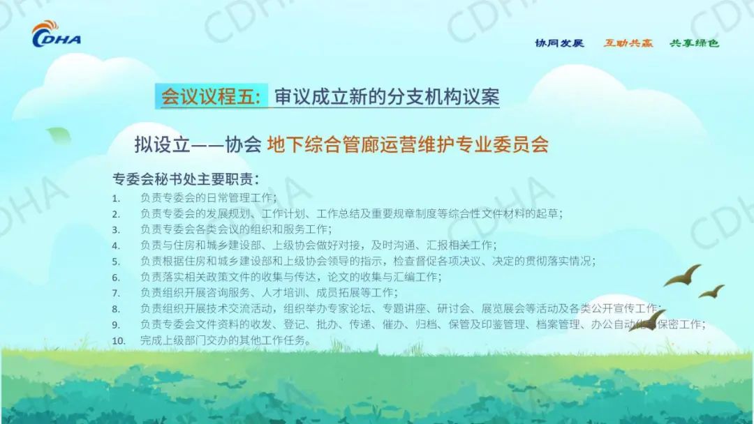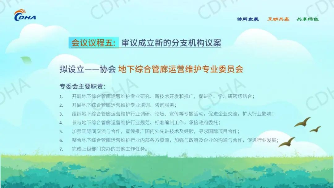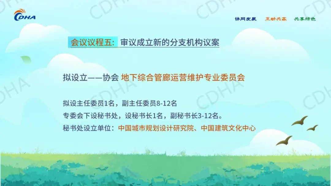 同意成立地下综合管廊运营维护专业委员会,由中国城市规划设计研究院、中国建筑文化中心组成地下综合管廊运营维护专业委员会筹备组,并负责专委会成立及成立后的日常工作。