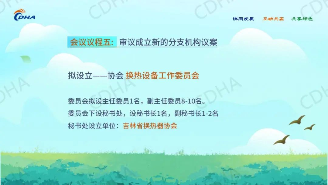 同意成立换热设备工作委员会,由吉林省换热器协会负责工作委员会筹备及成立后的日常工作。