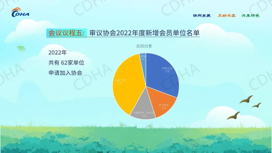 同意天津市华春能源集团有限公司、华电电力科学研究院有限公司等62家单位成为协会会员单位。