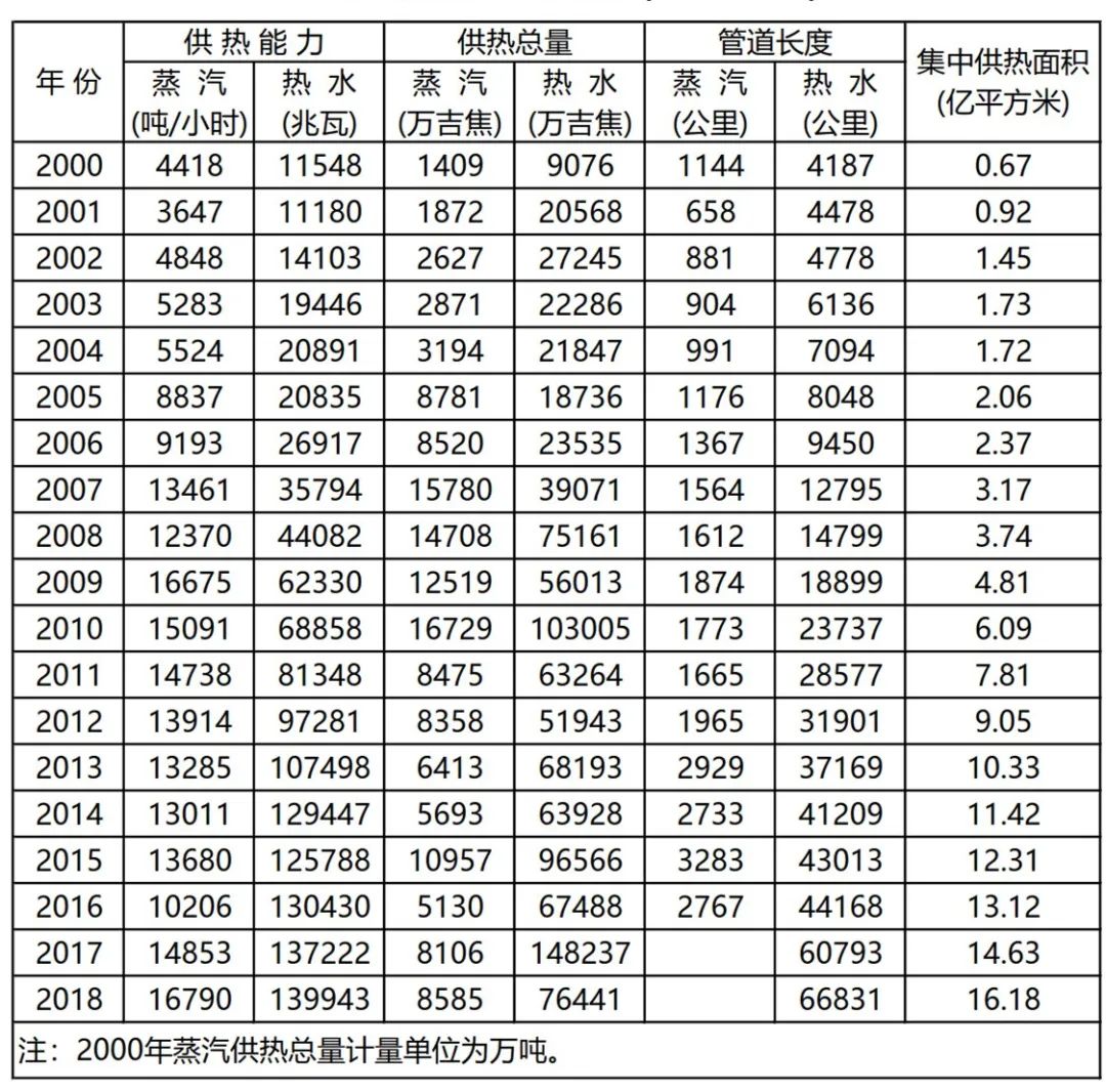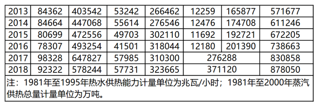 2020年3月27日,住房和城乡建设部发布《2018年中国城乡建设统计年鉴》,公布了1981年至2018年全国历年城市集中供热情况以及2000年至2018年全国历年县城集中供热情况。