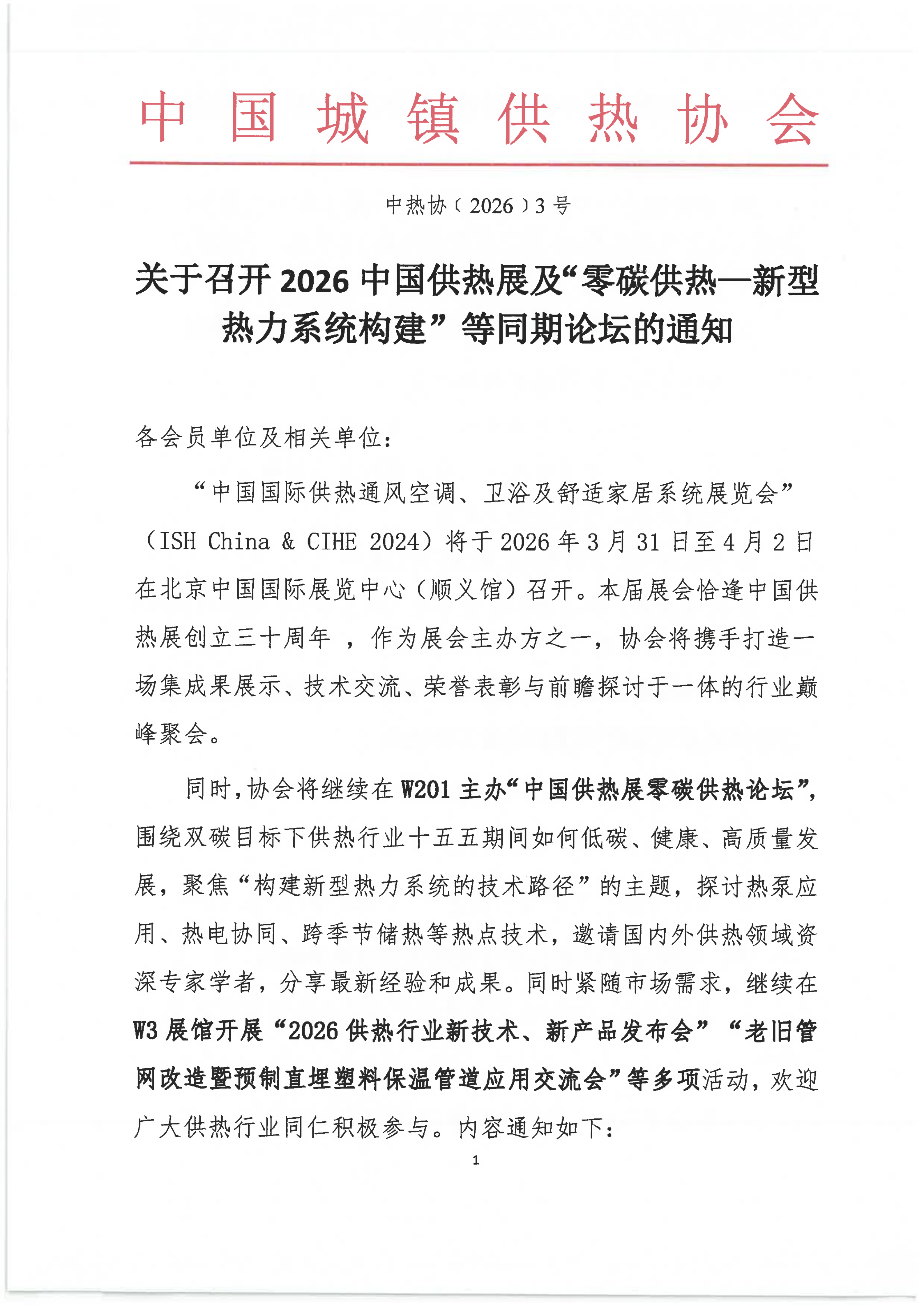 关于召开2026中国供热展及“零碳供热—新型热力系统构建”等同期论坛的通知