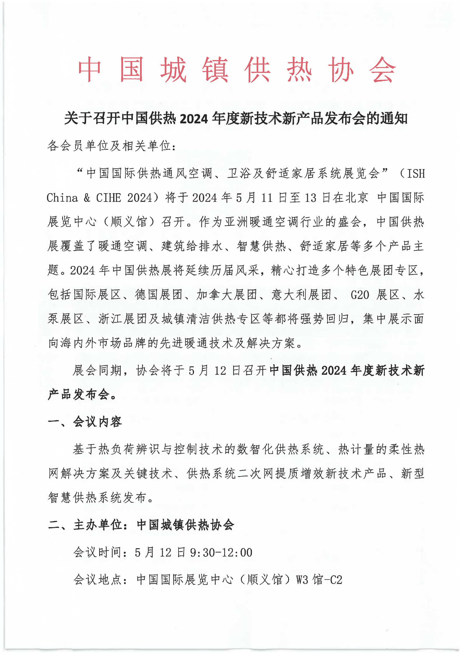 关于召开中国供热2024年度新技术新产品发布会的通知