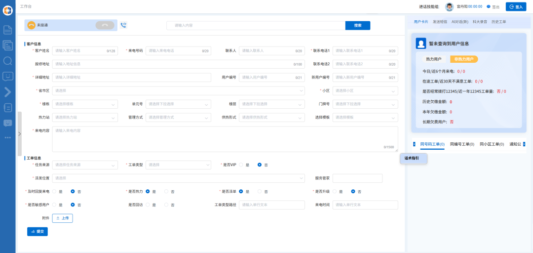 供热初期增配近百名坐席与AI语音机器人,保障工单高峰期的接通率与转派效率。
