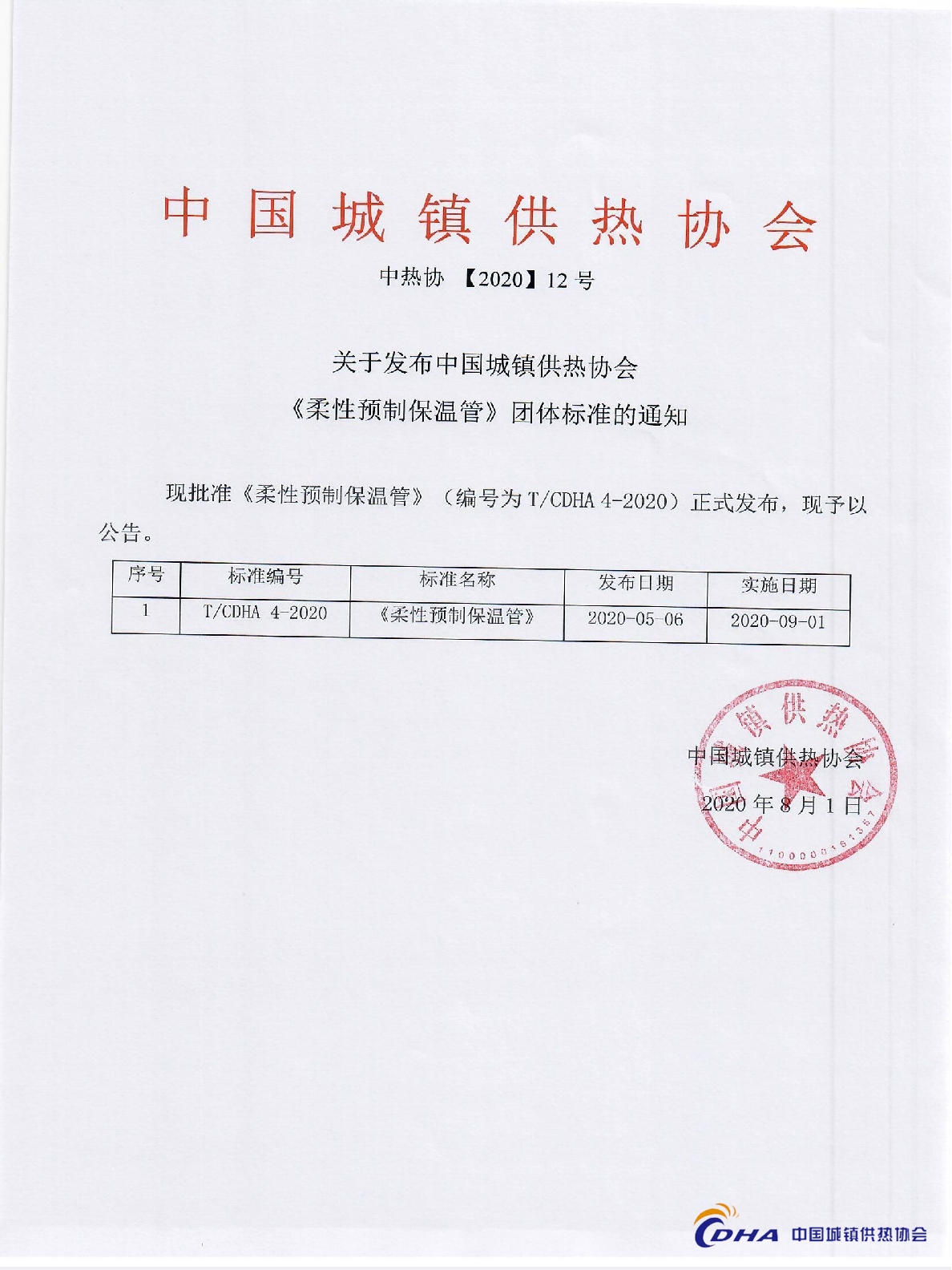 关于发布中国城镇供热协会《柔性预制保温管》团体标准的通知