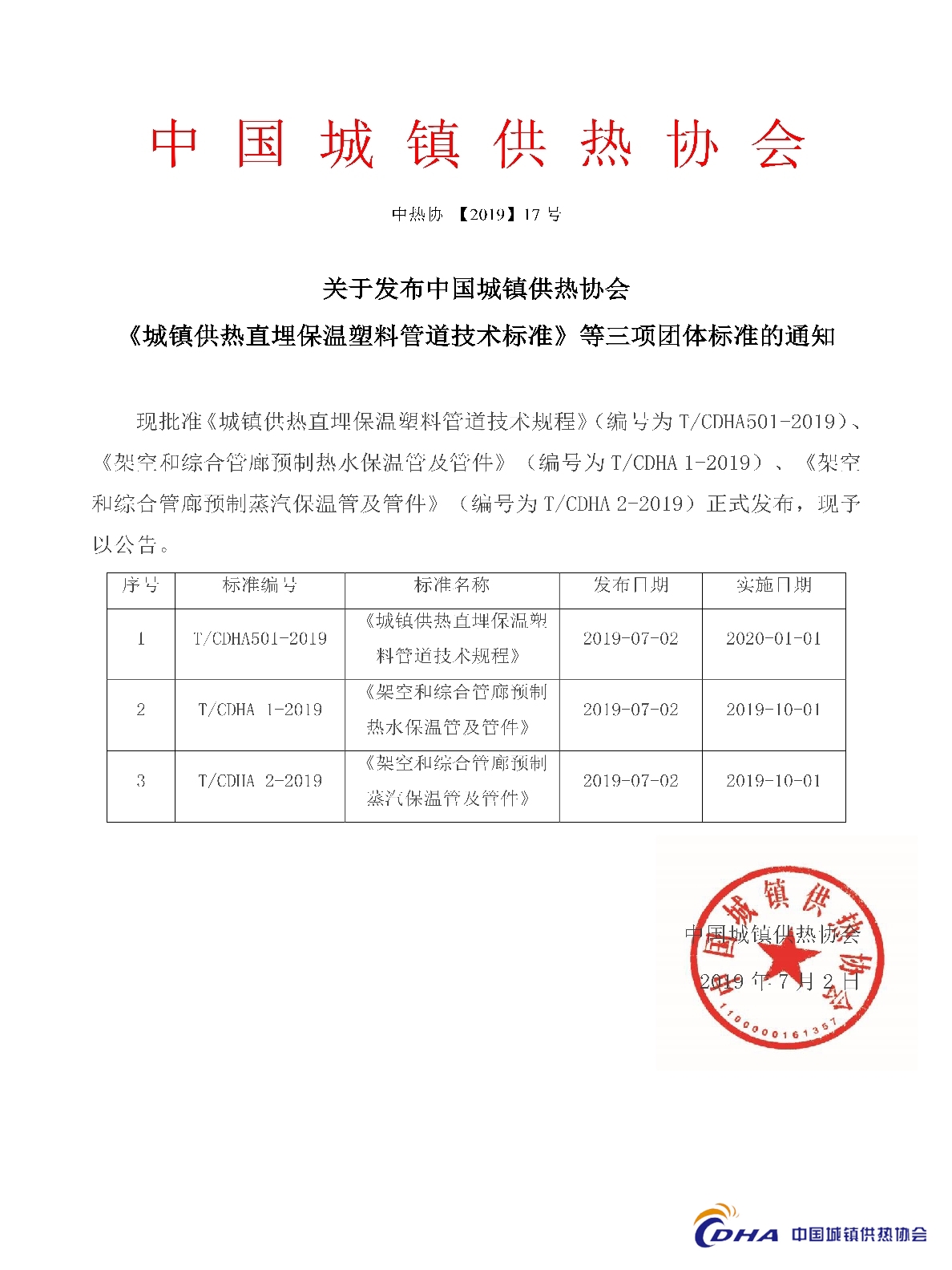关于发布中国城镇供热协会《城镇供热直埋保温塑料管道技术标准》等三项团体标准的通知