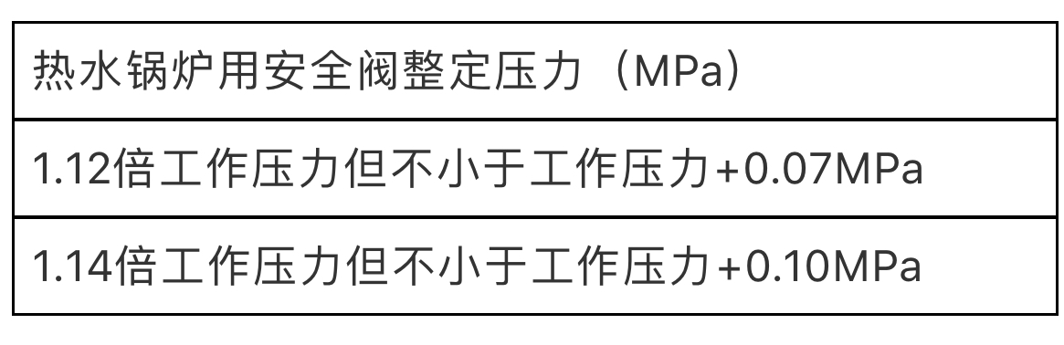 注:锅炉上必须有一个安全阀按表中较低的整定压力进行调整。这里的工作压力是指与安全阀直接连接部件的工作压力。
